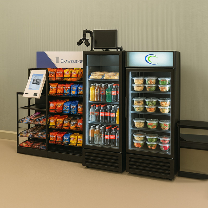 Upgrade your workplace with a modern self-service market, stocked with fresh meals, snacks, and beverages your team will love — available 24/7 with cashless checkout. (Includes: Micro / Micro Markets & Mini Micro-Market)